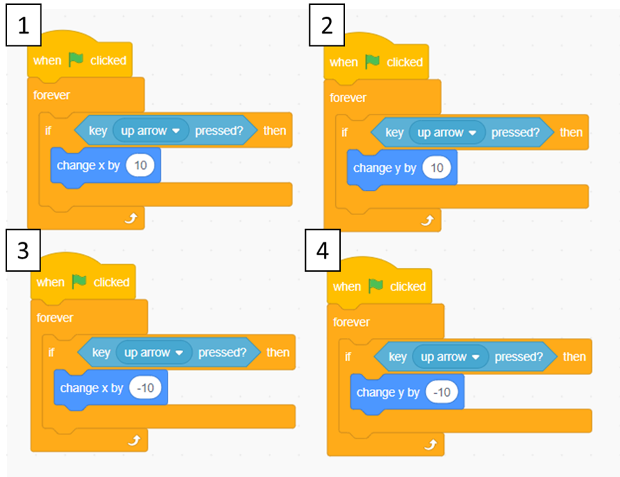Which script would enable a sprite to move up the screen when the up arrow key is pressed?